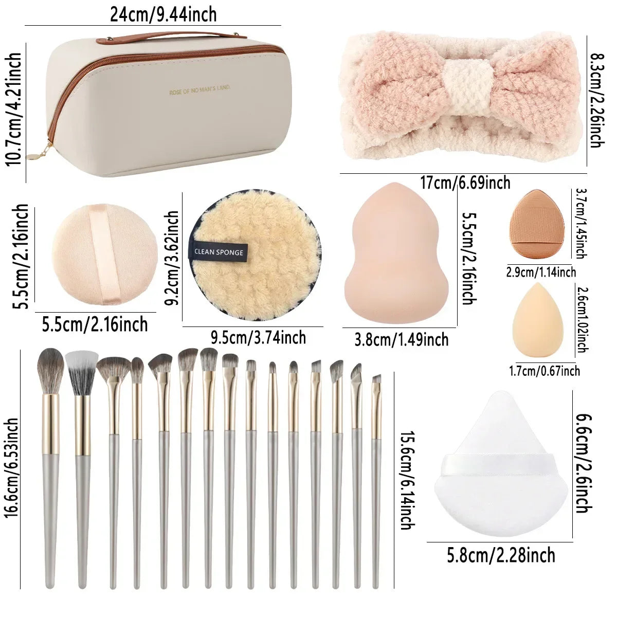 36pcs Beauty Tool Set with Square Storage Bag – 15 Makeup Brushes, Powder Puff, Hair Band & More