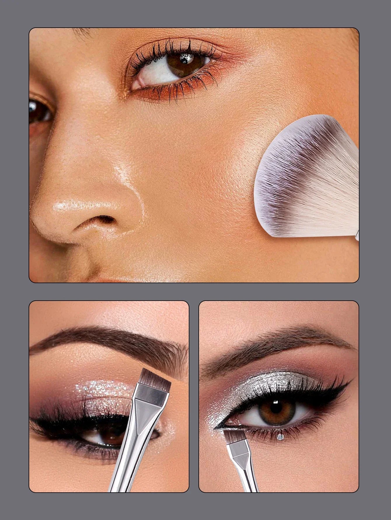 High-quality synthetic bristles with sleek silver-tone handles – soft, durable, and cruelty-free.