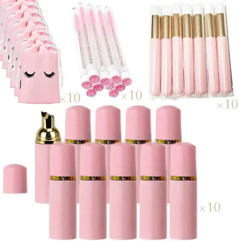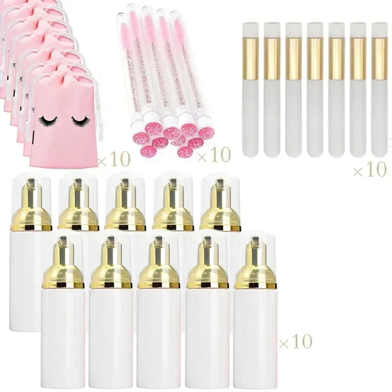 40pcs Lash Shampoo Bottles & Brushes Set – Foam Pump Dispenser & Deep Cleaning Tools for Eyelash Extensions