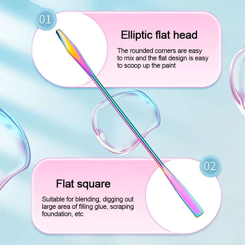 Blend, mix, and create effortlessly with this acrylic palette tool kit — featuring a clear mixing tray, spatula, and rod perfect for foundation, gel polish, eyeshadow, and cream-based cosmetics.