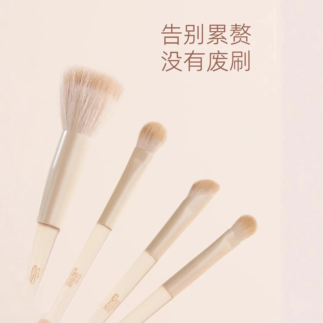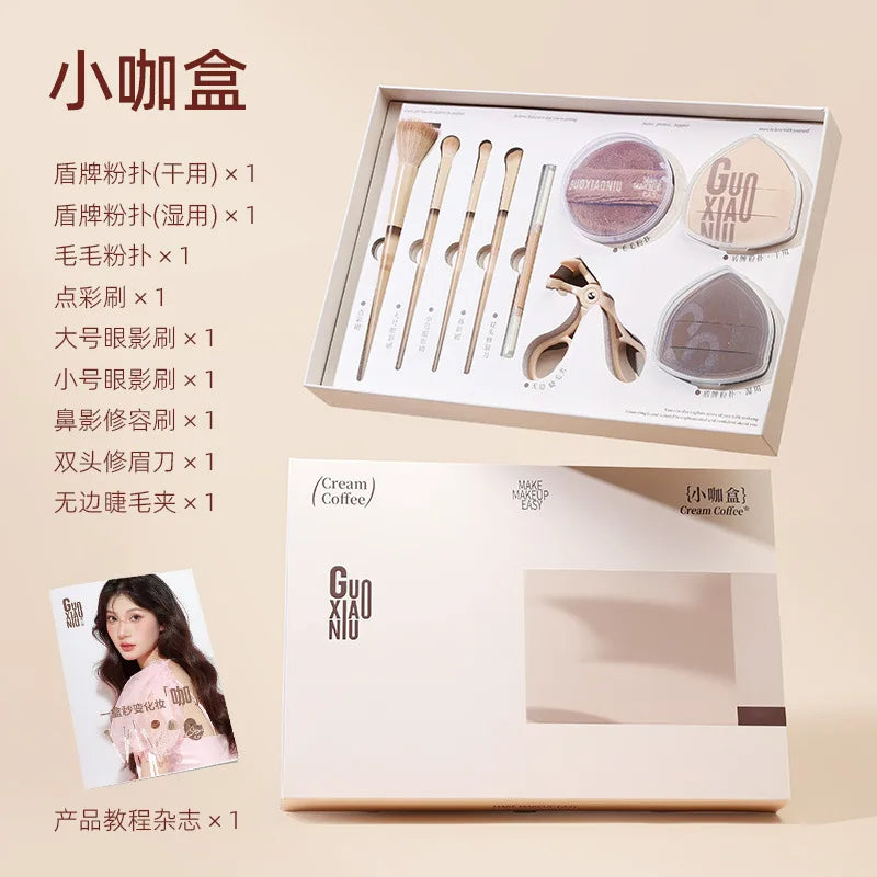 Guo Xiaoniu Small Coffee Box Makeup Tool Set – Powder Puff, Eyeshadow & Contour Brushes