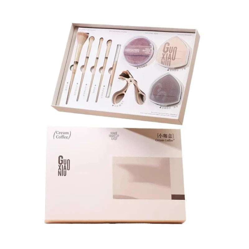 Add charm and convenience to your makeup routine — grab the Guo Xiaoniu Coffee Box Beauty Tool Set today!