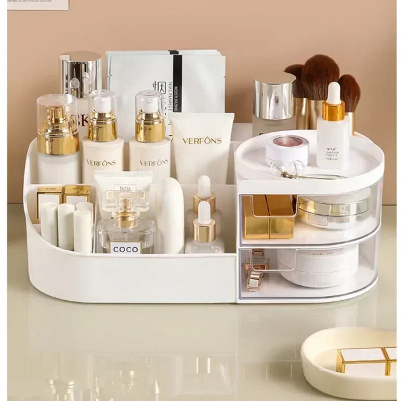 Keep your vanity neat and clutter-free with this large-capacity cosmetic storage box — featuring multiple drawers and compartments for organizing makeup, jewelry, nail polish, and daily essentials.