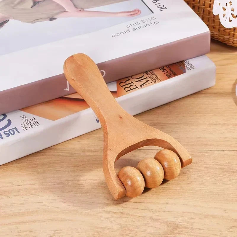 Wooden Manual Massage Roller – Deep Tissue Massager for Face, Neck, Back & Legs