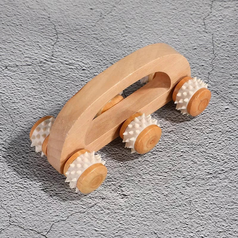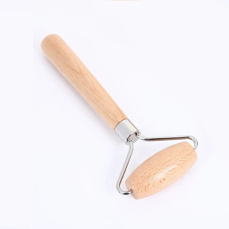 Natural wood with a smooth, skin-safe finish and ergonomic design for comfortable, controlled rolling.